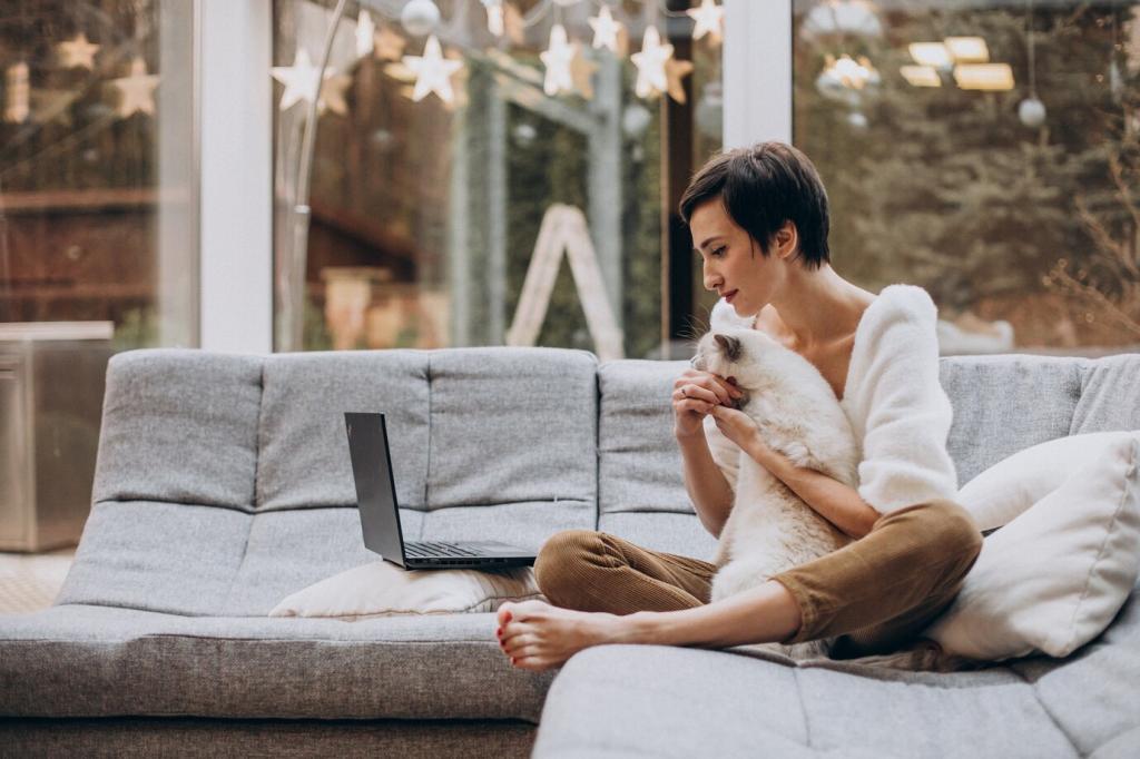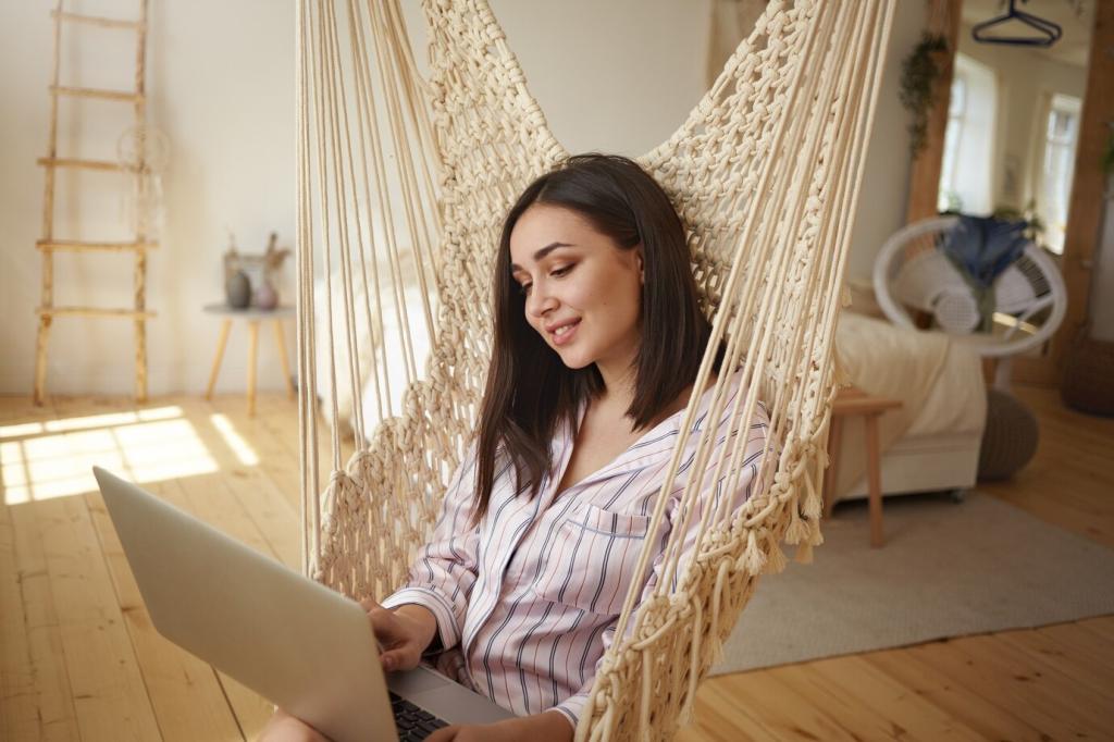 Offene Regale strukturieren, ohne zu trennen. Bücher, Körbe und Pflanzen schaffen eine halbdurchlässige Grenze zwischen Leseecke und Fernsehnische. So entsteht Intimität, ohne dass der Raum an Weite verliert.
